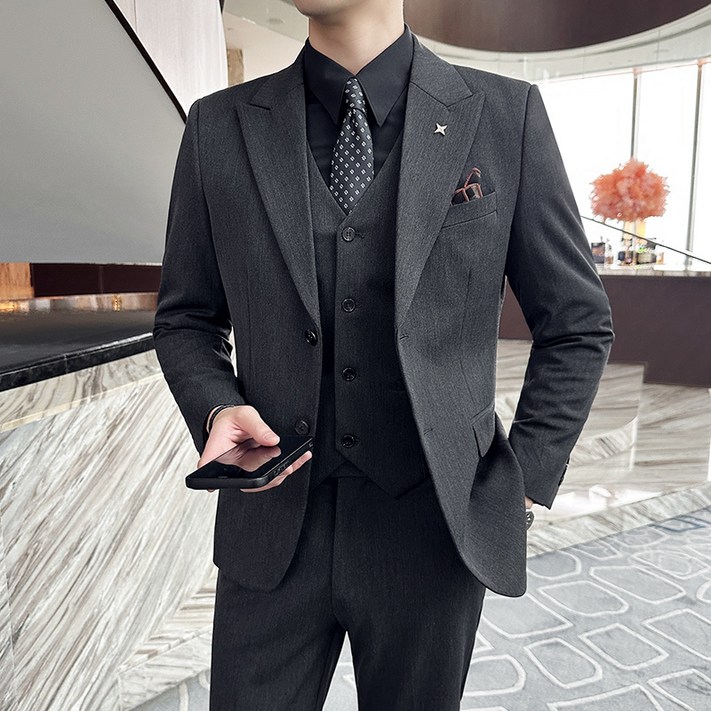 Enyofe 남성용 투버튼 캐주얼 쓰리피스 겨울 정장세트 재킷조끼바지 면접 기획 남자수트 3피스 결혼식 하객 남성 슈트 남자 가을검은 양복 세트3컬러