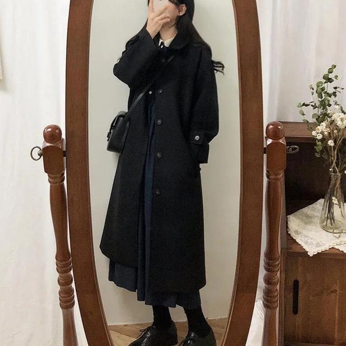 UPPERCUT 여성 루즈핏 스탠다드 싱글 버튼 코트 데일리 카라코트 봄가을 간절기 빅사이즈 롱코트