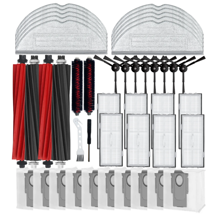 핑크샘 호환 로보락 S8 프로 울트라 물걸레 메인브러시 사이드 필터 먼지봉투, 1개, 1년소모품 44pcs
