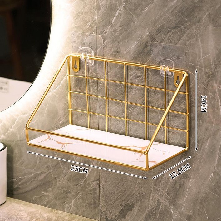 욕실골드선반 수납 걸이 무타공 화장실정리, 1개, 7012 화이트 베이스 골드 패턴 스몰