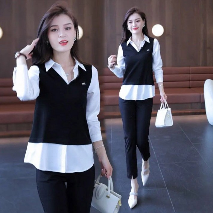 페이준 여성 가을 겨울 스판 셔츠 칼라 슬림핏 상의 심플 통근 긴팔 상의 IJ8541