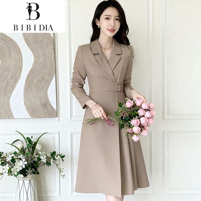 비비디아 여성 봄가을 자켓형 미디롱 플레어 정장핏 하객룩 오피스룩 원피스 데일리룩5569