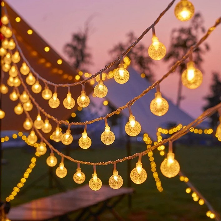 SASAKO 감성캠핑 LED 줄조명 앵두전구 크리스마스 장식등 파티라이트 정원 카페 야외조명 크리스마스조명 방수 줄조명 USB배터리 양용형
