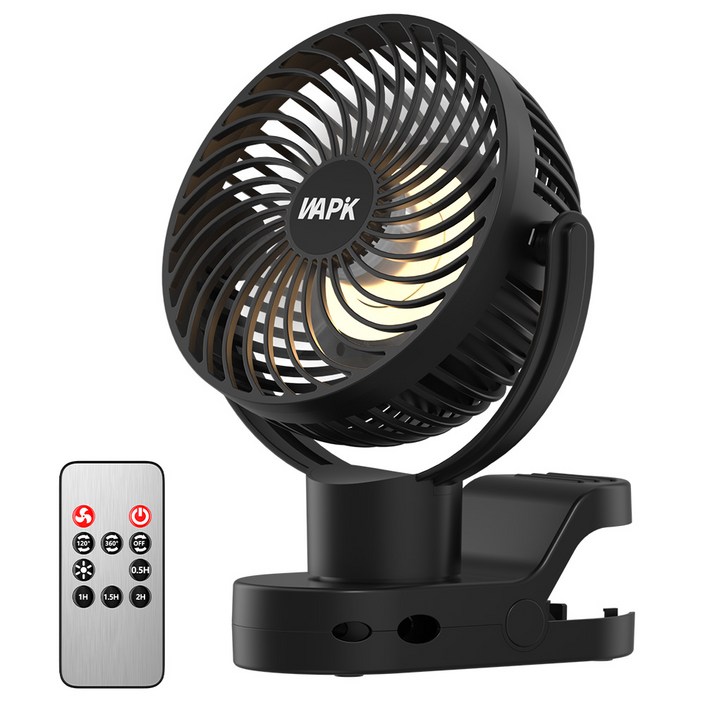 와피크 집게형 미니 무선 선풍기 F8 Pro USB충전식 탁상용 자동회전 무드등 유모차, 블랙