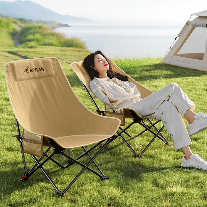 AORAN 각도조절 경량 접이식 캠핑 의자 세트, 2개, 카키색