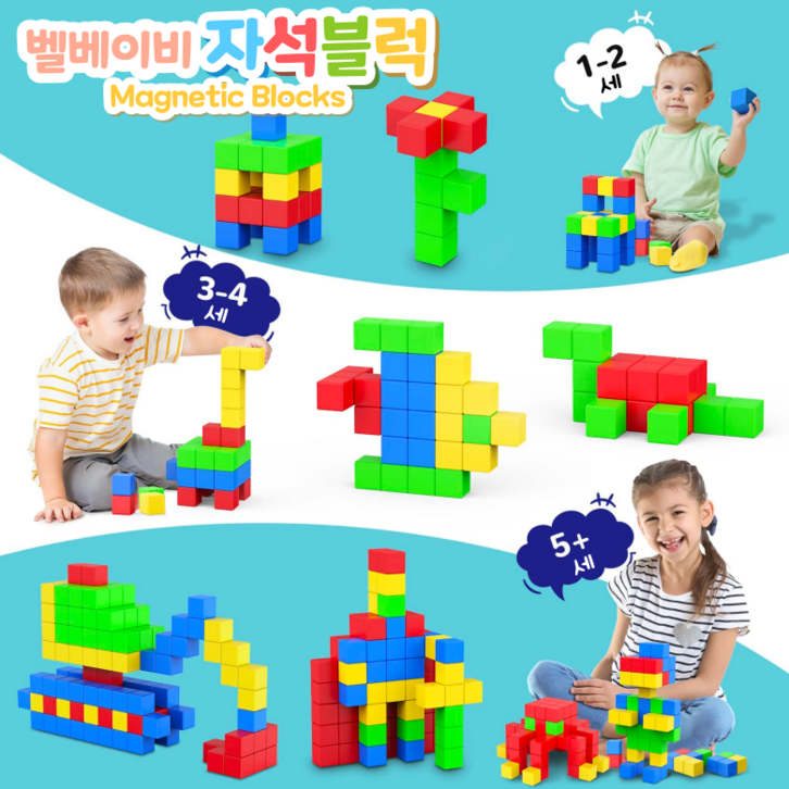 벨베이비 영유아 자석블럭 빅사이즈 35mm, 레인보우, 4세트