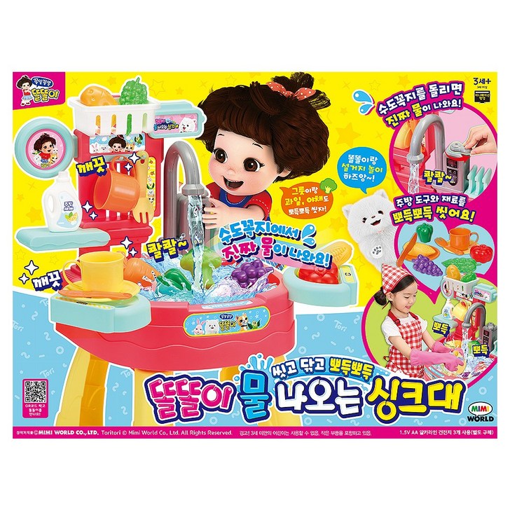 미미월드 똘똘이 물이 나오는 싱크대놀이 소꿉놀이 장난감 세트