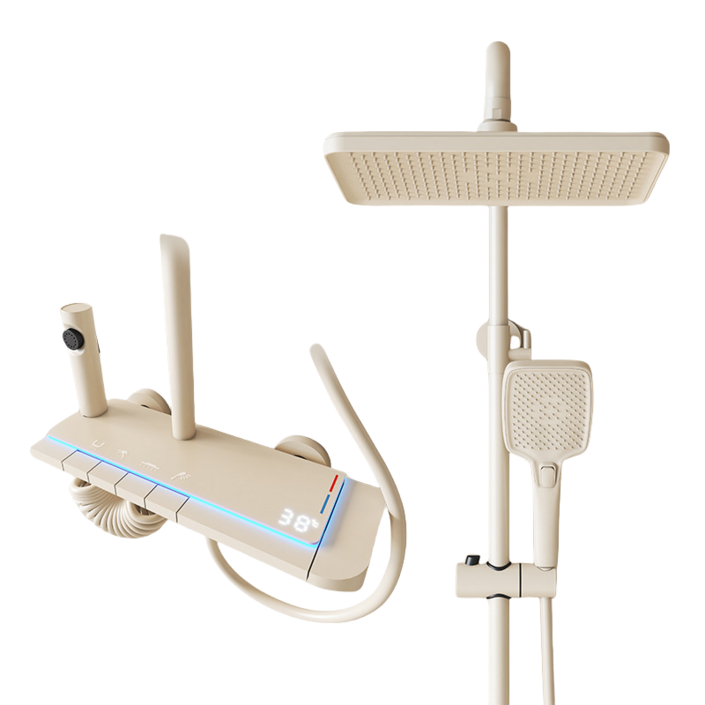 AUDOC LED 욕실 해바라기 샤워기 세트 온도 표시 냉온형 일체형 고급 샤워기 세트, 베이지, 1개