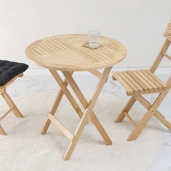 벤트리 원목 접이식 원형 카페 테이블 내추럴 홈카페 테이블, 원목색