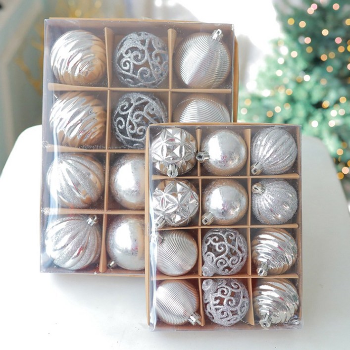 실버 플라스틱 오너먼트 12개 세트 크리스마스 트리 장식 소품