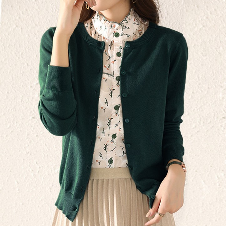 턴키 여성용 빅사이즈 스판 라운드 니트 가디건 AE087
