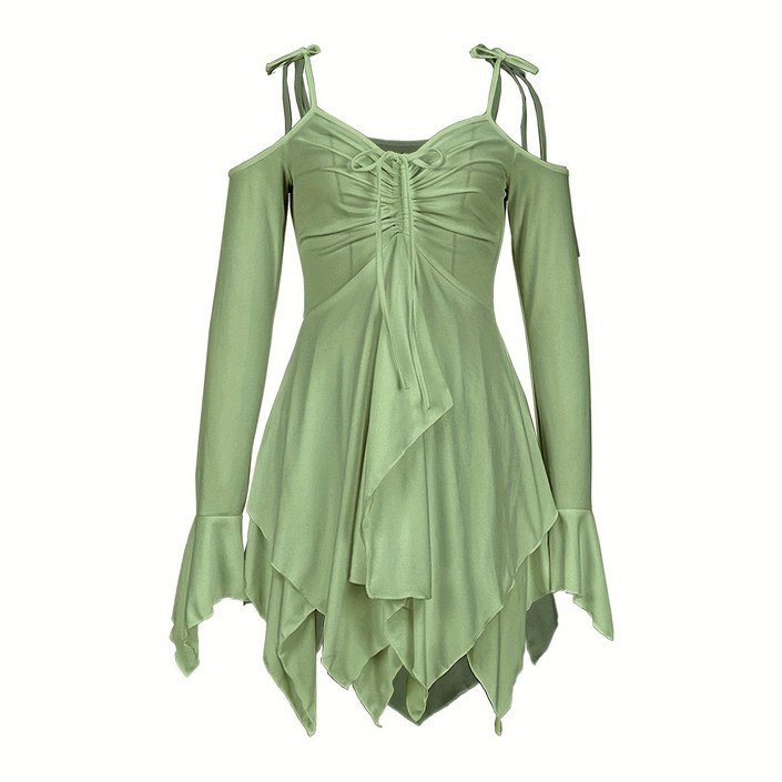 휴양지원피스 베트남여행룩 다낭 블룸 비대칭 밑단 홀터 스트랩 드레스 Y2K 엑스트라 긴 소매 주름 여성 의류