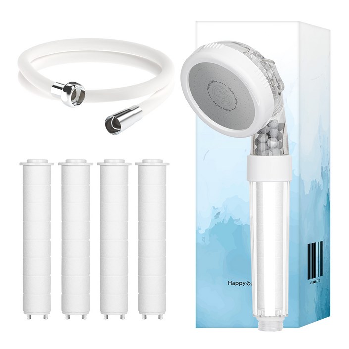 해피달링 3WAY 필터 샤워기 필터 4개 리플랜 샤워호스 2m 세트, 1세트, 화이트