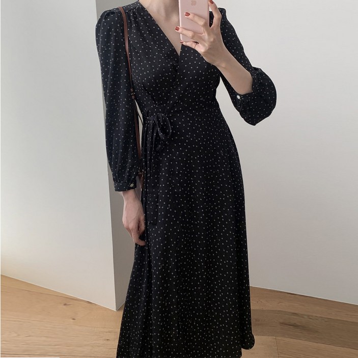 하라크 여성 플라워 랩 검정 롱 원피스