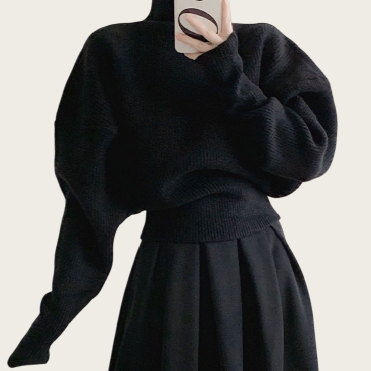 Makone 여성 가을 겨울 스탠딩 칼라 이너 긴팔 가오리형 패션 스웨터