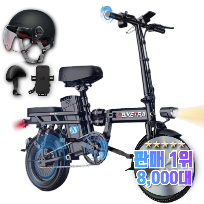 바이크TRA 안전하고 오래타는 전기 자전거 미니벨로 언덕길 전동 바이크 배달 대행, 트라 블랙 48V, 카본