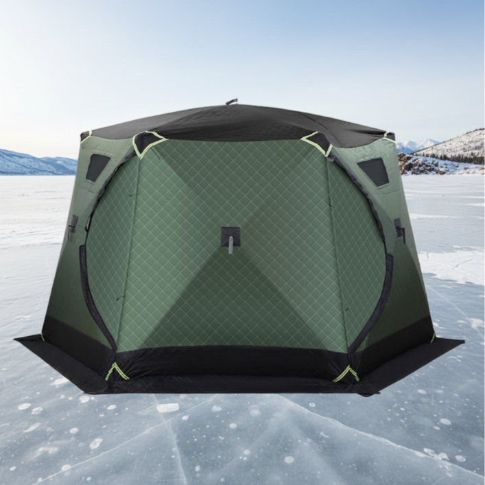 차니글로벌 큐브텐트 특대 68인용 얼음 낚시 원터치 방한 동계 빙어 누빔 야외 육각, 밀리터리그린
