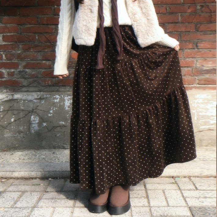 피니 벨벳겨울까지.. 소미 도트 벨벳 캉캉 롱스커트 2color 겨울스커트 가을스커트 캉캉스커트 맥시스커트 벨벳스커트 모리걸 빈티지 러블리룩