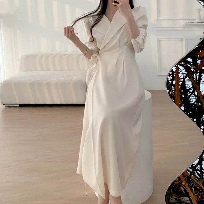 페이퍼먼츠 니에베 랩 스타일 긴팔 롱 원피스 07029