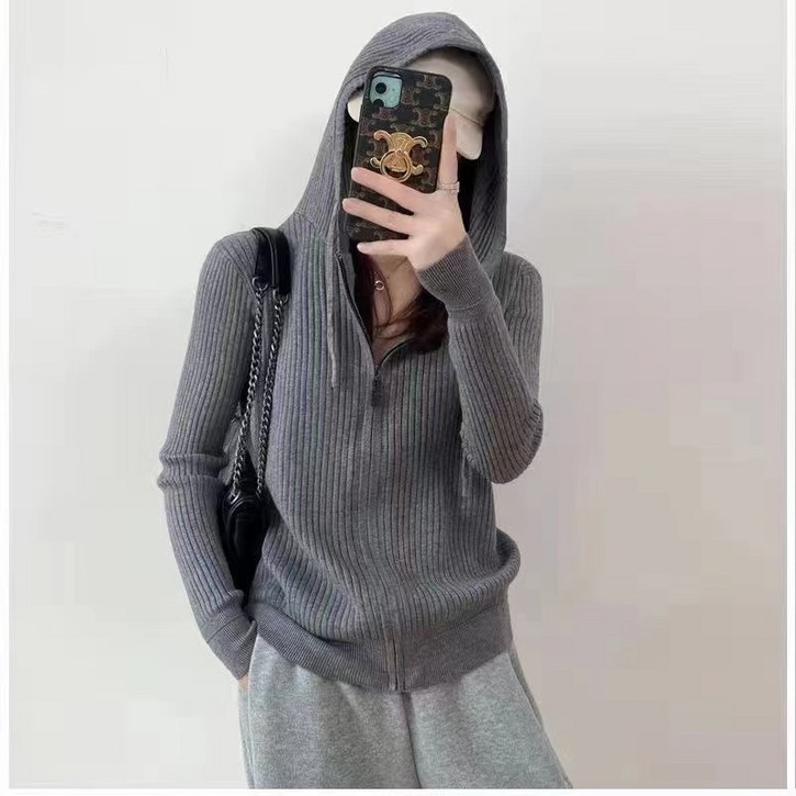 영메이 여성용 봄 가을 니트 후드집업 YM23070F