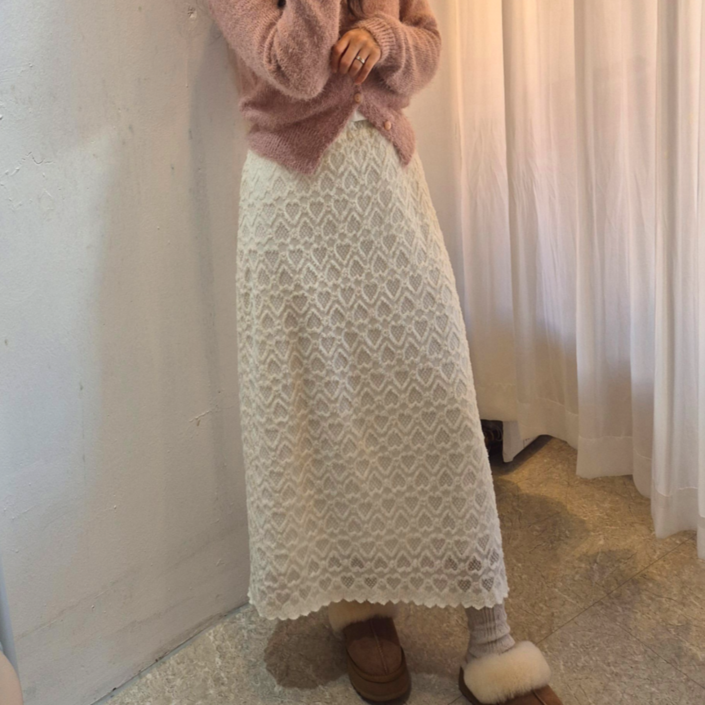 스타일원 여성 밴딩 펀칭 기모 안감 레이스 롱 스커트 치마