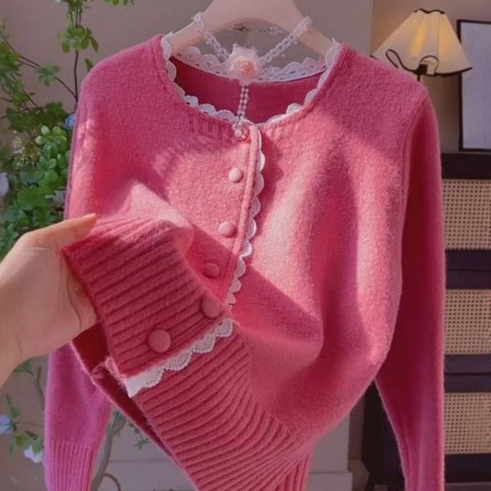 해피유통여성 봄가을 레이스 밑단 니트 가디건 귀여운 패셔너블 디자인 XG20
