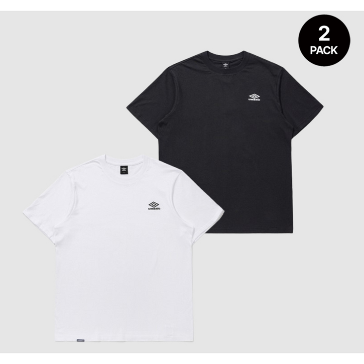 정품 엄브로 성인 남녀공용 블랙 화이트 2개세트 반팔 라운드 티셔츠 가벼운 시원 ASDMO2